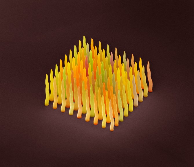 این هم که نقاشی خوشکول موشکول نیست، بلکه عکس نانو لوله های پلاتین بر روی سیلیکون (Platinum Nanorods on Silicon) هست.