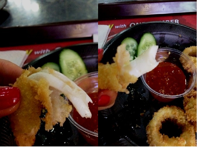 ولی تو خیلی از رستورانها و فست فودهای اونجا سِرو میشد...خب من قبل از اینکه برم با خودم عهد کرده بودم حتما یه بارم که شده تو اون چند روز یه غذایی که تا حالا نخوردم امتحان کنم...و البته به عهدم وفا کردم و یکی نه بلکه چند تا از غذاهایی که تا حالا نخورده بودم امتحان کردم :))) از فیلۀ سالمونِ خام و خرچنگِ دودی شده بگیر تا چند نوع پنیرِ مختلف که تا حالا نخورده بودم و همین کالاماری...اتفاقا همۀ پنیرهایی که امتحان کردم بدم اومد خخخ ولی بقیه رو دوست داشتم :)دوبی
